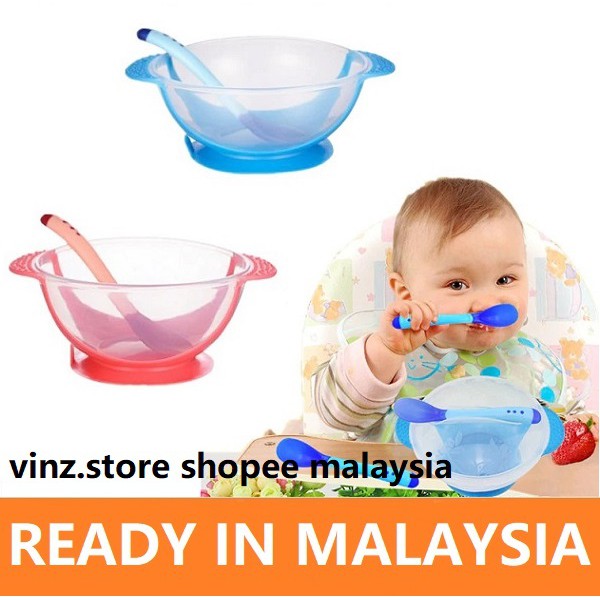 READY STOCK 3 in 1 Baby Tableware Bowl Spoon Detection Sumber : shopee.com.my